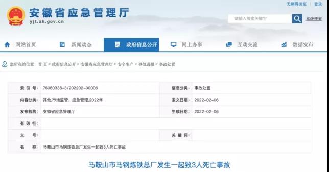熱鬧的春節(jié)假期結束了,令人沒想到的是假期最后一天,安徽一煉鐵廠突發(fā)事故,致4人不幸遇難。 復工安全千萬不能兒戲! 據(jù)安徽省應急管理廳通報,2月6日上午,安徽馬鞍山市馬鋼煉鐵總廠一料倉發(fā)生事故,致4人不幸遇難、1人受傷。 2月6日上午10時20分左右,馬鋼煉鐵總廠區(qū)域內(nèi)一料倉本體漏灰,6名工作人員進行搶修作業(yè)時,灰斗本體突然開裂,大量脫硫灰冒出。工作人員被從四樓平臺沖至二樓平臺,4人送醫(yī)搶救,其中3人搶救無效死亡,1人生命體征平穩(wěn);另1人手部輕微灼傷;1人被掩埋,17時被搜救出已無生命體征。 目前,事故原因正在調(diào)查分析中。