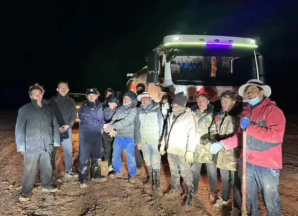5月20日晚17:00時(shí)許,西藏雙湖縣公安局措折羌瑪鄉(xiāng)派出所接到緊急報(bào)警:一輛前往本鄉(xiāng)鎮(zhèn)送油的油罐車,在行駛至3村附近時(shí),因道路泥濘,車輛不慎駛?cè)肽酀糁斜焕В毙杈仍。接警后,派出所立刻響?yīng),迅速集結(jié)救援力量、攜帶專業(yè)救援設(shè)備,火速趕赴現(xiàn)場(chǎng)。到達(dá)現(xiàn)場(chǎng)后,民警發(fā)現(xiàn)滿載汽油的油罐車因自身重量大,深陷泥濘,普通車輛難以實(shí)施救援。民警隨即從2村和3村,緊急協(xié)調(diào)大貨車前來(lái)支援。 考慮到油罐車過(guò)重,直接拖拽存在安全隱患,民警便制定“減重緩?fù)稀狈桨,調(diào)配皮卡車,裝載油桶,將油罐車內(nèi)汽油逐步抽取轉(zhuǎn)運(yùn),最終抽出24桶散裝汽油;同時(shí),組織人員在附近采集沙子,裝填130余袋塑料袋,鋪設(shè)在救援路線上,增強(qiáng)車輛與地面的摩擦力,并將大貨車與被困油罐車通過(guò)鋼絲繩相連進(jìn)行拖拽。最終,在民警與全體救援人員的緊密配合下,經(jīng)過(guò)長(zhǎng)達(dá)12小時(shí)的連續(xù)奮戰(zhàn),成功將深陷泥濘的油罐貨車解救出來(lái)。