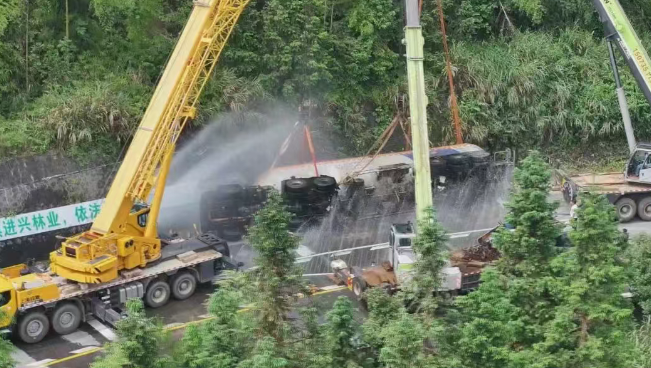 6月3日凌晨5時(shí)許,湖南藍(lán)山縣一輛裝載液化石油氣的重型半掛牽引車(chē)在行駛至G537線(xiàn)南風(fēng)坳路段時(shí)發(fā)生側(cè)翻,情況非常危險(xiǎn)。事故現(xiàn)場(chǎng),在G537線(xiàn)南風(fēng)坳路段,一輛湘M牌照的槽罐車(chē)側(cè)翻于交通干道彎道處,罐體內(nèi)裝載約有25噸液化石油氣,一旦罐體發(fā)生泄露,將威脅到周?chē)鷰坠飪?nèi)群眾的生命安全。 根據(jù)現(xiàn)場(chǎng)情況,立即成立了現(xiàn)場(chǎng)指揮部,劃定警戒區(qū)域,對(duì)警戒范圍內(nèi)的人員進(jìn)行疏散,并對(duì)G537所城至南風(fēng)坳路段實(shí)施交通管制,保障救援通道暢通。中午12時(shí)10分許,在確保現(xiàn)場(chǎng)無(wú)氣體泄漏后,吊裝作業(yè)組對(duì)槽罐車(chē)實(shí)施扶正作業(yè)。經(jīng)過(guò)13個(gè)小時(shí)全力救援和處置,順利完成了槽罐車(chē)側(cè)翻現(xiàn)場(chǎng)清理和安全評(píng)估工作,G537線(xiàn)南風(fēng)坳路段也于19時(shí)恢復(fù)通行。截至4日凌晨2點(diǎn),槽罐車(chē)被安全轉(zhuǎn)移至所城液化氣站,并將罐體內(nèi)的液化氣安全卸載,險(xiǎn)情得到解除。
