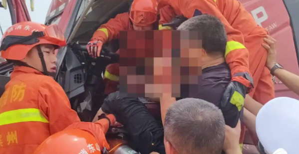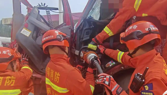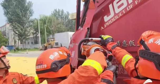 8月7日13時32分,在濱州鄒平市魏橋鎮(zhèn)金橋大道發(fā)生一起油罐車相撞事故,情況緊急,急需救援。消防救援人員到達現場后看到,事故發(fā)生在一個十字路口,由南向北行駛的油罐車撞上由西向東正常行駛的半掛車車廂,導致半掛車車廂側翻,車廂內玉米傾瀉一地,油罐車駕駛室嚴重變形,駕駛員頭部鮮血淋漓,雙腿被卡在駕駛室內無法脫困。 消防救援人員首先利用液壓破拆工具組對駕駛室車門進行破拆,仔細觀察駕駛員雙腿被卡情況,并詢問是否有其他受傷部位。隨即消防救援人員利用液壓擴張器對變形駕駛室進行擴張,增大被困駕駛員腿部救援空間,同時車內消防救援人員扶住駕駛員身體,并不斷安慰被困人員情緒。 經過10分鐘的緊張救援,消防救援人員將司機被卡的雙腿成功抽出,抬上救護車送往醫(yī)院。