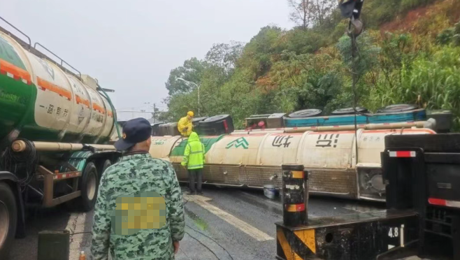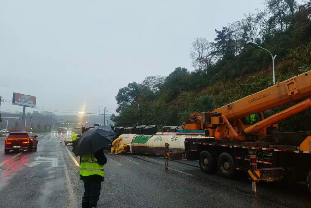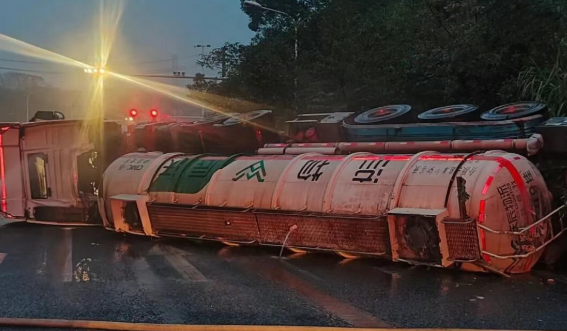 11月3日06時04分,湖南湘潭市消防救援支隊接到報警稱湘潭縣018縣道(往楊家橋收費站方向)一罐車發(fā)生側翻泄漏,車上載有濃度為32%的液堿。指揮中心立即調派金桂路站共3輛消防車、12名指戰(zhàn)員趕赴現(xiàn)場,同時聯(lián)動應急、交通、環(huán)保公安等部門協(xié)同處置。06時22分,消防救援力量抵達事故地點。 經偵查發(fā)現(xiàn),事故車輛為一輛槽罐車,車載約33噸、濃度32%的液堿,行駛過程中發(fā)生側翻,目前罐頂入孔處出現(xiàn)少量泄漏。根據(jù)現(xiàn)場情況,帶隊指揮員立即組織力量在泄漏點設置水槍,對泄漏的液堿構筑圍堤封堵和封堵下水道,阻止泄漏的液堿進一步向外擴散,并迅速利用堵漏器材對泄漏點進行封堵。 同時,經過現(xiàn)場指揮部及相關專家的評估決策,決定采用對罐體進行切割來輸轉倒罐的方案,進行本次事故處置。9時05分,救援人員使用自帶防爆轉料泵、軟管等裝備開始實施倒罐作業(yè)。經過近4個小時的持續(xù)奮戰(zhàn),9時51分,救援人員成功將事故車槽罐內液堿轉移至備用槽罐,順利完成倒灌作業(yè)。經反復檢測確認,現(xiàn)場無危險后,全體人員安全撤離。